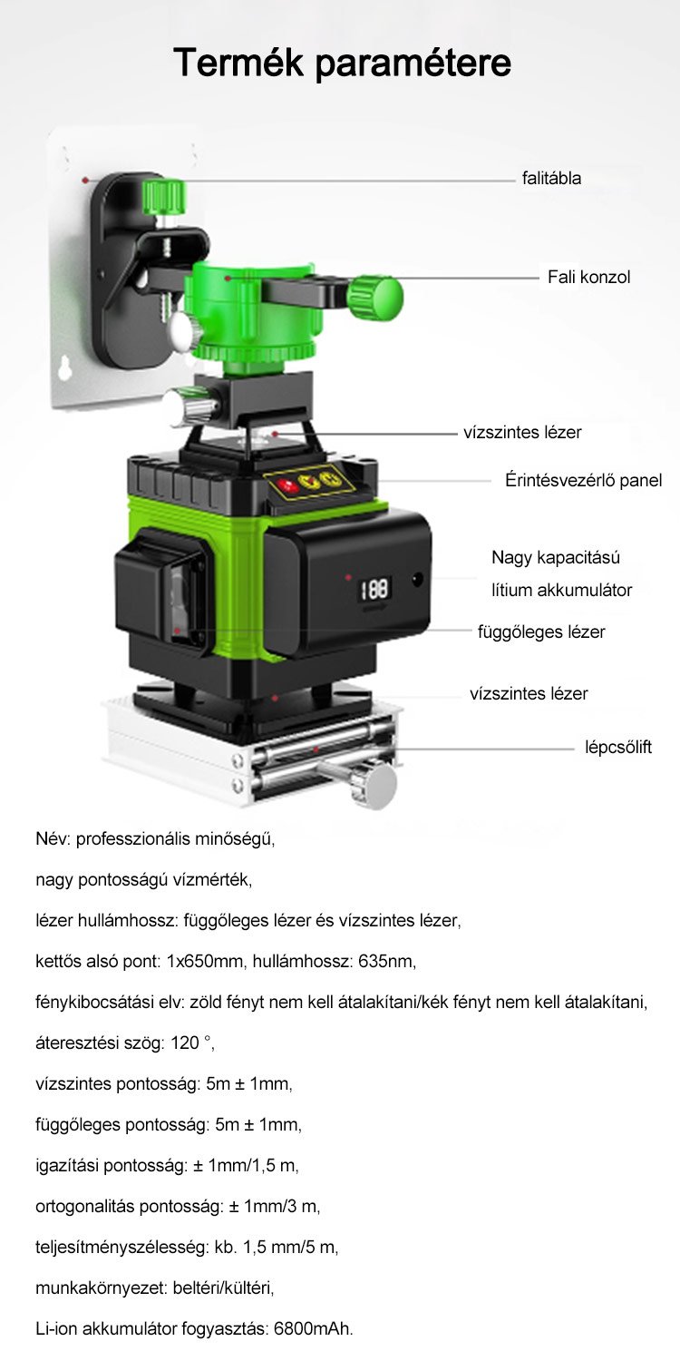Professzionális, nagy pontosságú vízszintező